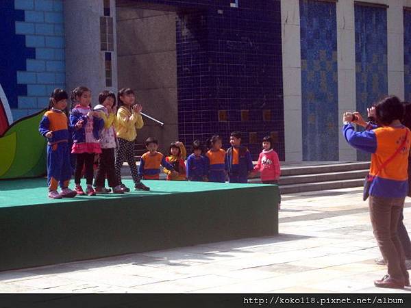 舞台上~ 一群小朋友正讓老師拍照著.....